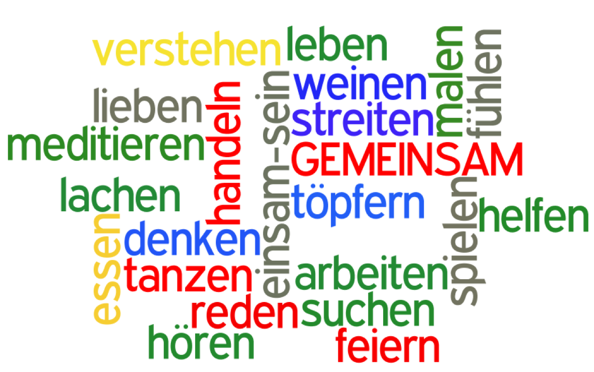 Was und wie ist eigentlich gemeinsames Sein? Allmählich setzt sich die Erkenntnis durch, dass es nicht einfach eine Gemeinschaft geben kann, in der alle alles miteinander machen, in der alle alle gut finden, in der alle dieselben Interessen haben etc. Es hat sich gezeigt, dass nicht nur Plätze in der Mitte zu besetzen sind. Dass ein Kreis nicht nur ein Zentrum hat, sondern auch eine Peripherie, einen Rand und alles dazwischen. Dass da noch andere Leute sind, jeder auf der gleichen Suche, jeder mit etwas anderen Gaben und etwas anderen Fehlern. Nicht alle für das Gleiche erwacht. Dass die verschiedensten Unter-Gemeinschaften möglich und notwendig sind. Dass deren Verschiedenheit und deren vielschichtiges Ineinandergreifen ein lebendiges Ganzes bilden. Dass darin mit der Zeit die meisten ihren Platz erkennen und einnehmen und so ihre Qualitäten optimal für das Ganze einsetzen. Wie ein Baum, der Wurzeln, Äste, Blätter hat. Und nur alle zusammen machen einen Baum aus. Und kein Blatt hat Stress damit, dass es ein Blatt ist und nicht ein Ast, oder dass es am falschen Platz sei, zu hoch oben oder zu tief unten. So sind wir nun am Lernen, uns auseinanderzusetzen mit dem was ist, und nicht mit dem, was wir haben möchten.